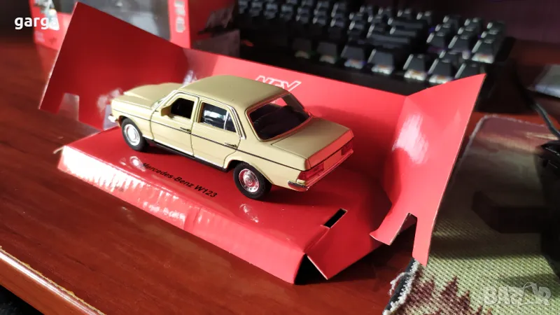 Първата е MERCEDES BENC W123 мащаб 1:34:39 Д12см Ш5см В4см.