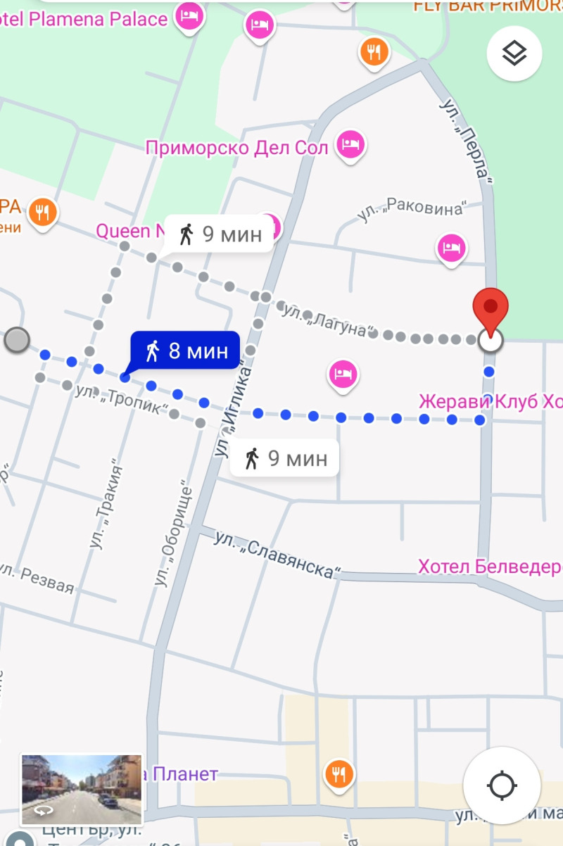 * Местоположението е на 500 метра от плажната ивица в тих и спокоен район в близост до Супермаркет , Детска градина и Аптека.