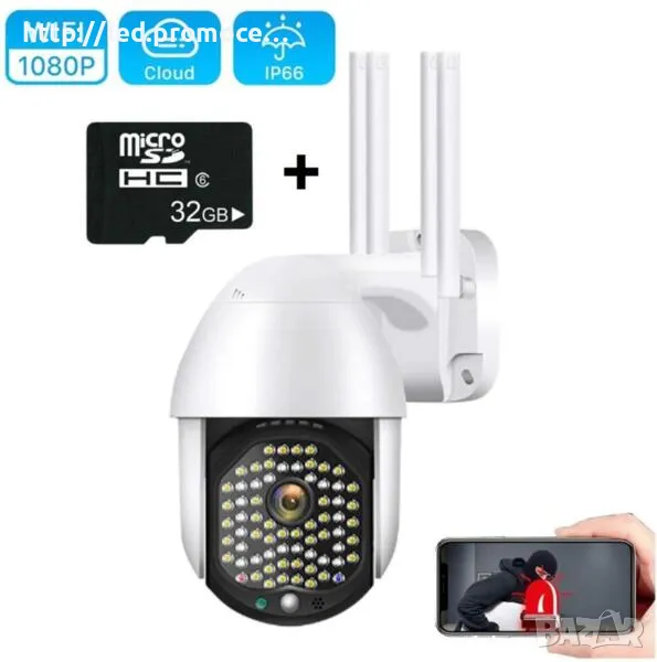 Wi-Fi IP Камера Robot 2845 за външно видеонаблюдение. Моделът разполага с 120 IR и LED диода, което гарантира ясна видимост през тъмния период до 60 метра. 4 Wi-Fi 5dB антени спомагат за по-голям обхват от рутера.