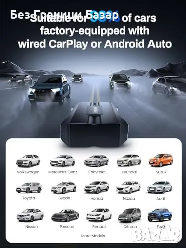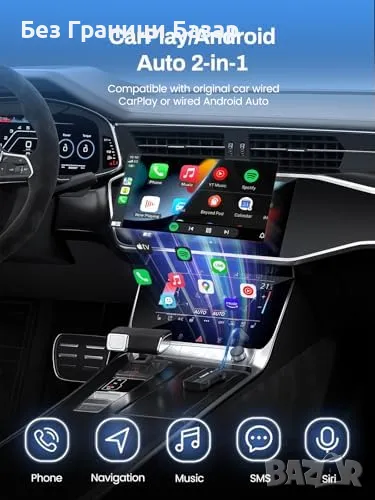 Нов Безжичен CarPlay адаптер за автомобили 2017+ iPhone/Android Auto