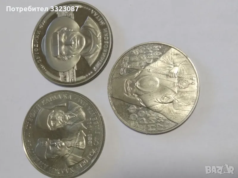 Юбилейни монети от 5лв:1988-25години Кремиковски метал, 5лв -120г. от гибелта на Хаджи Димитър и Стефан Караджа и 5лв от 1989г Софроний Врачански 1813г.Цената е за брой монета.