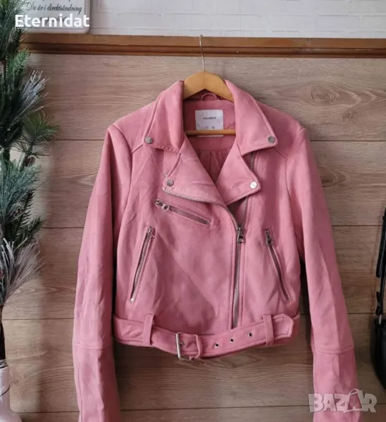 Розово късо яке велур с коланче PULL BEAR. Размер Л. Лека забележка на единият ръкав. Цялостно отлично състояние. Цена 30лв