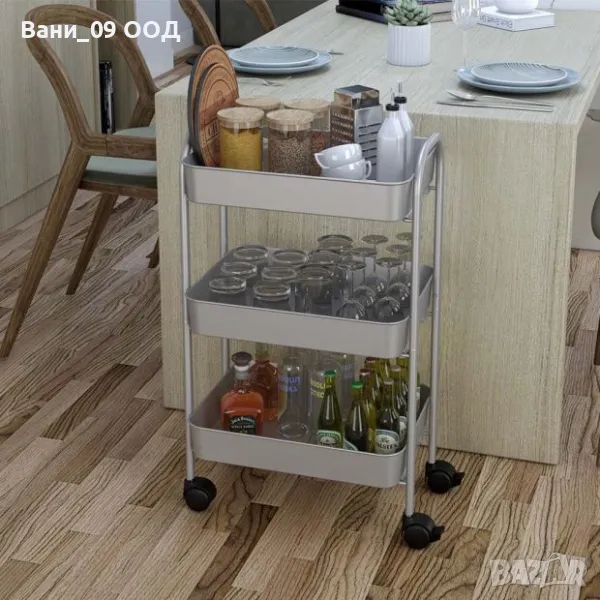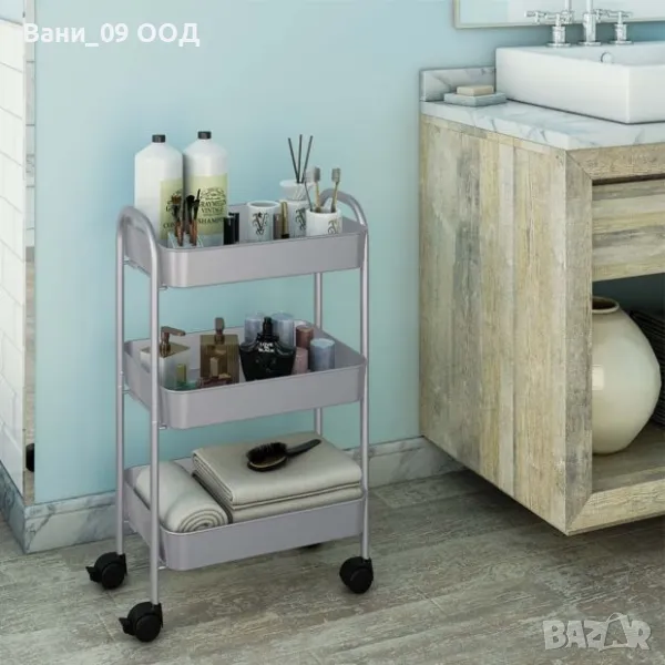 Сервизна количка, притежаваща 3 нива в сив цвят с размери: 45.5/32/76.4 см
