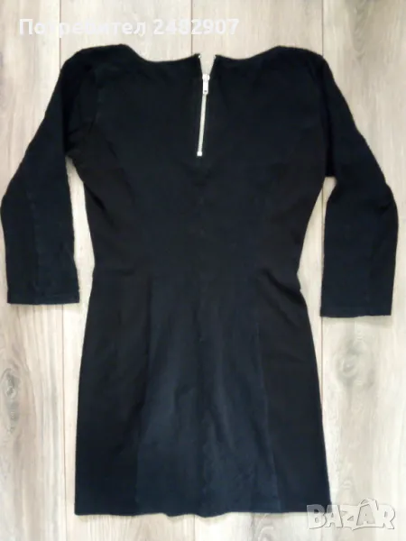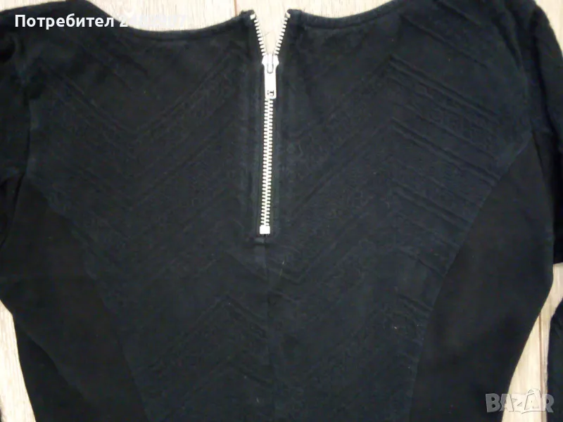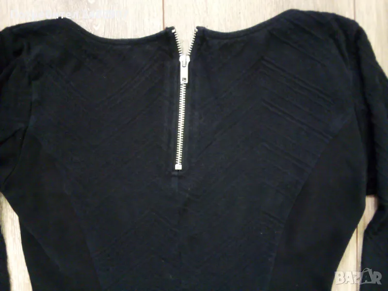 Черна дамска туника, с цип на гърба, размер XS. Ширина в раменете - 35 см, ширина под мишниците - 42 см, ширина в долната част - 40 см, дължина от рамото до долу - 71 см, дължина на ръкава от рамото - 39 см, ширина на ръкава в долната част - 11 см. Много запазена, почти не е използвана, леко еластична.