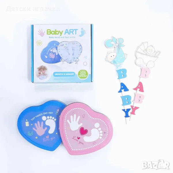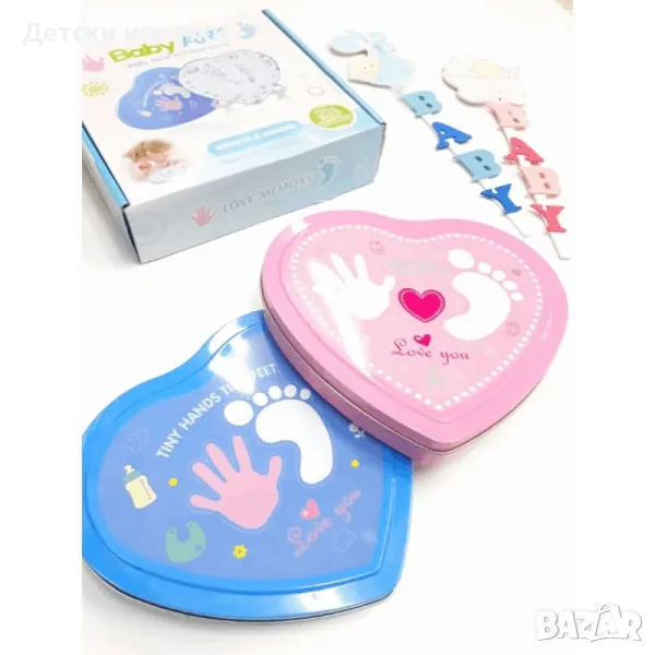 Подаръчният комплект ви позволява да създадете отливка на ръката (дланта) и крака (крачето) на вашето бебе!