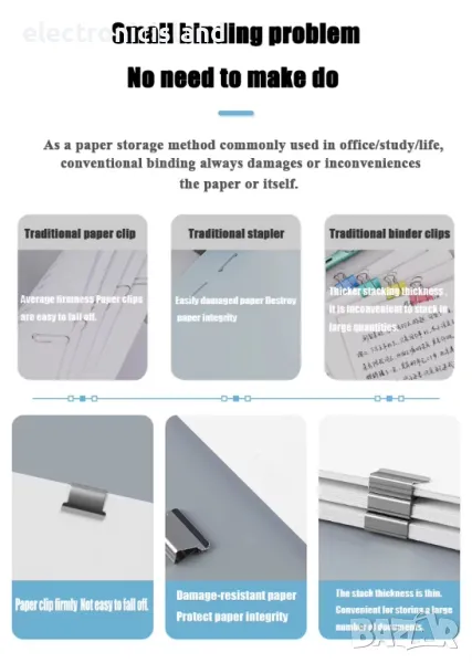 1. Неповреждащ телбод: За разлика от традиционните телбоди, използването на скоба за закрепване на хартията не причинява повреда на хартията.