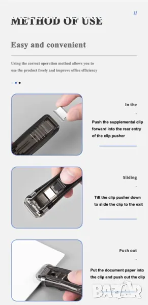 Той е с компактни размери, здрав за захващане на хартията и лесен за защипване.