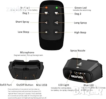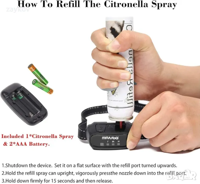 Индикатори за изтощена батерия и регулируем нашийник: Червената LED светлина на нашийника ще мига, когато батерията е изтощена. Регулируемата яка е подходяща за всички породи кучета над 8 килограма и над 6 месеца (8-27 инча дълга каишка). Голям капацитет: 25 ~ 35 аерозола на пълно зареждане и 300-400 аерозола на кутия.