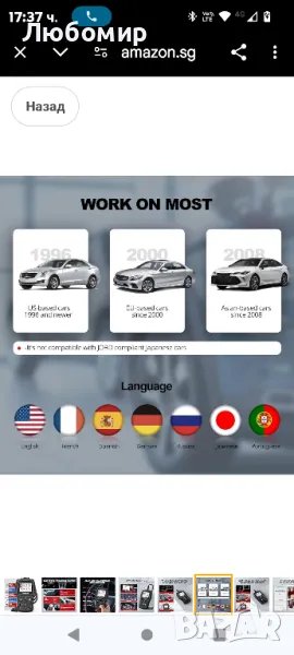 OBD II/EOBD ДИАГНОСТИКА Този obd2 скенер притежава пълни obd2 функции. Четене на кодове, изтриване на кодове, светлинен индикатор за грешка MIL, данни на живо, тест на EVAP система, тест на бордовия монитор, преглед на замръзнала рамка, тест на O2 сензор, информация за превозното средство, I/M готовност, търсене на DTC код, за всички OBD2 съвместими превозни средства.HELP Клавиш за пряк път за спестяване на време и LED индикатор HELP Пряк път: Удобно ви помага да разрешите повечето основни проблеми за секунда със съвети. Светодиоден индикатор: Бърз и лесен начин за визуално идентифициране на състоянието на вашия автомобил чрез неговата зелена, жълта и червена LED светлина. Зелен Няма код за грешка Жълт Изчакващи кодове за грешка Червен Постоянни кодове за грешка.ШИРОКО ПОКРИТИЕ НА ПРЕВОЗНИ СРЕДСТВА Този инструмент за сканиране obd2 работи на повечето автомобили от 1996 г. и по-нови в САЩ, ЕС от 2000 г. насам и автомобили, базирани в Азия от 2008 г. насам, превозни средства, базирани на OBDII, които са съвместими с OBDII. Поддържа английски, френски, испански, немски, руски, италиански и португалски. (Ако искате да сте по-сигурни дали е подходящ за вашия автомобил, можете да ни кажете марката, серията и годината на автомобила чрез съобщение на Amazon, преди да купите.). ДОЖИВОТНА БЕЗПЛАТНА АКТУАЛИЗАЦИЯ & ОТЧЕТ & ПЕЧАТ & 12 МЕСЕЦА ГАРАНЦИЯ ThinkOBD 500 поддържа връзка с компютър. Изтеглете и стартирайте инструмента за актуализиране и изберете и отпечатайте данните или актуализацията. Лесен е за работа, следвайки стъпките.