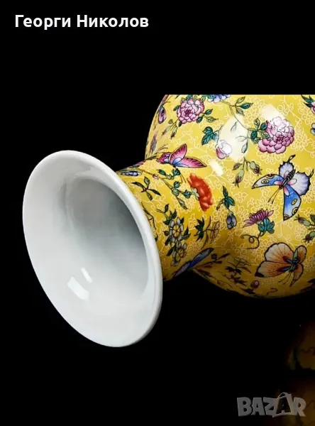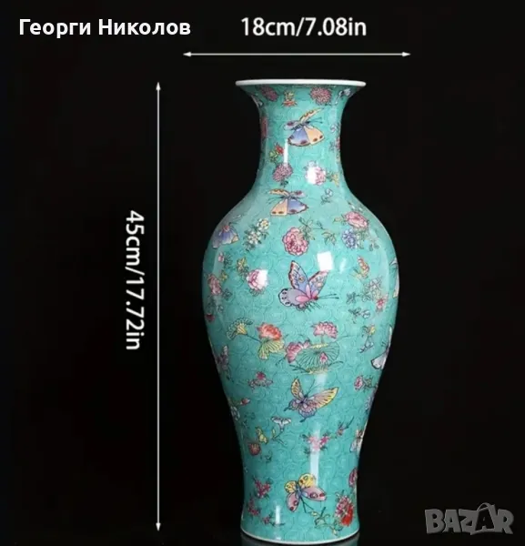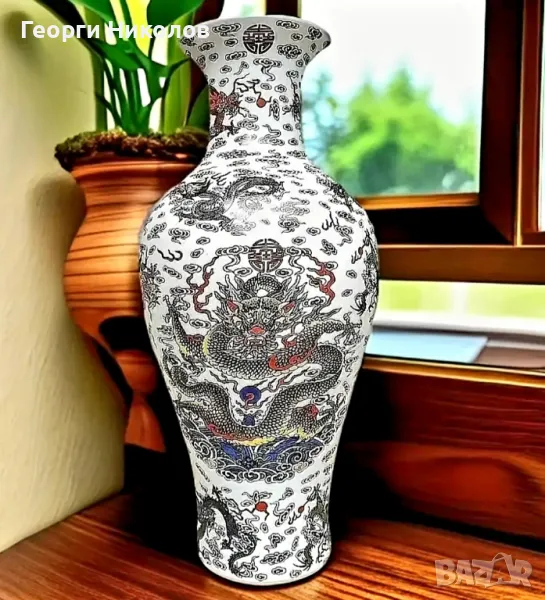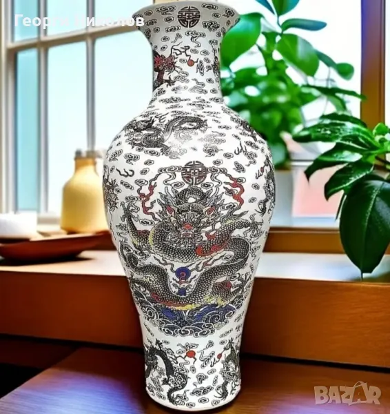 Винтидж Керамична Ваза с Китайско Вдъхновение и Цветен Дизайн.