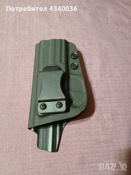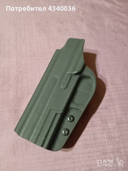 Модел 1: Подходящ за Зиг Зауер SP2022, за вътрешно скрито носене, изработен от Кайдекс Kydex. Чрез долните винтовете може да се регулира усилието за вадене, а чрез винтовете на щипката ъгълът за изнасяне. Зиг-а си ляга абсолютно нормално и го покрива целия.