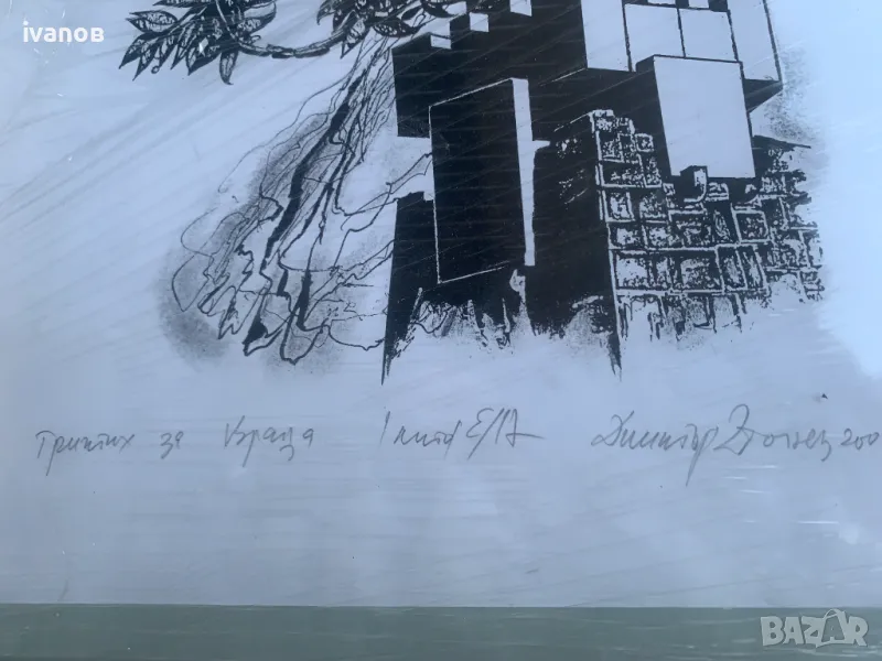 картина Триптих за Враца лито Е/А подписана размери с рамката 30см на 40см размери в паспартуто 25см на 37см
