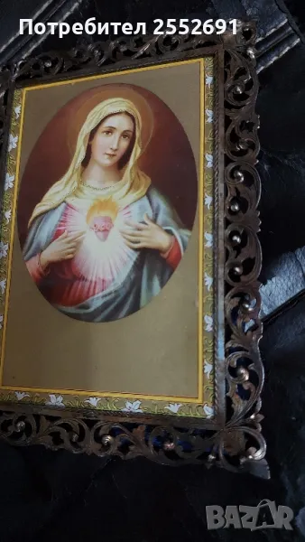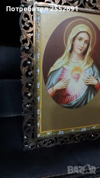 Настолна икона- ДЕВА с красива, ажурна, метална рамка. Размери- 17/12,5/1см.