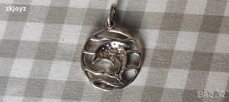 Висулка делфин изработена от сребро проба 925 ( маркирана, вижте снимките) , тегло 4.57 грама, диаметър 2.4 сантиметра.