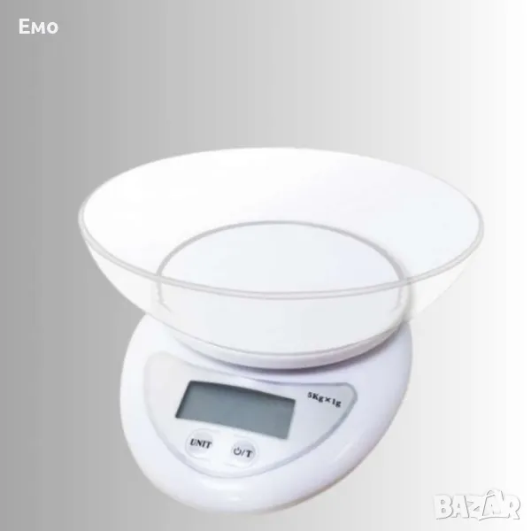 Кухненска везна с купа, 5кг., 2х ААА батерии ( не са вкл. ), LCD екран, Бял, Черен