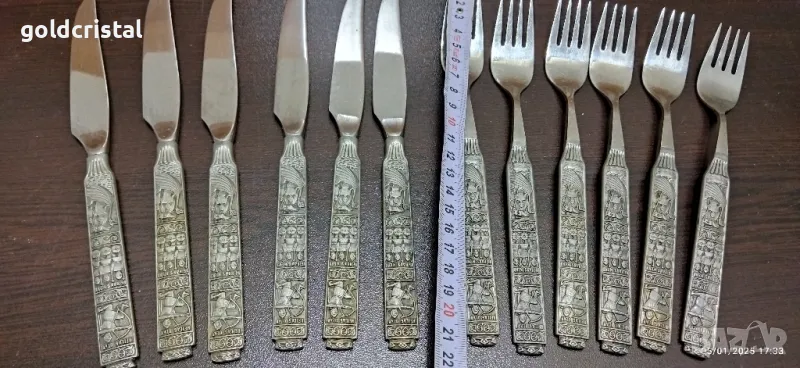 стари немски прибори за хранене неръждаеми ножове и вилици двустранно гравирани сервиз комплект сет лот ретро арт декор винтидж колекция стари старинни антикварни предмети обзавеждане за дома и семейството подходящи за подарък за ценители и колекционери