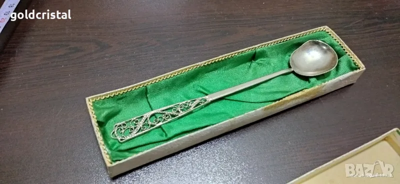 стара коктейлна лъжичка филигран в кутия 49лв без кутия 45лв сервиз комплект сет лот ретро арт декор винтидж колекция стари старинни антикварни предмети обзавеждане за дома и семейството подходящи за подарък за ценители и колекционери