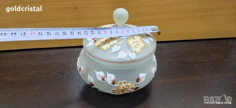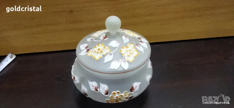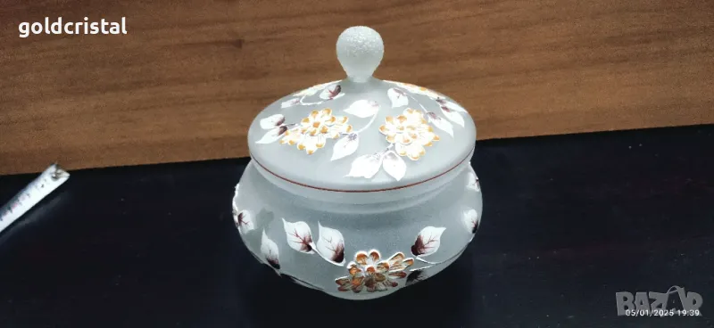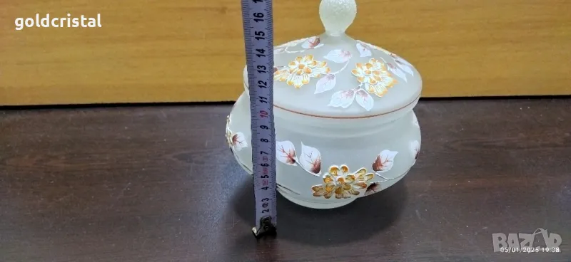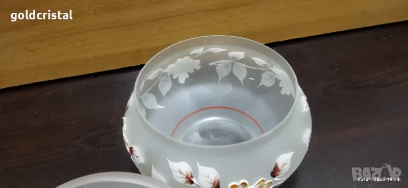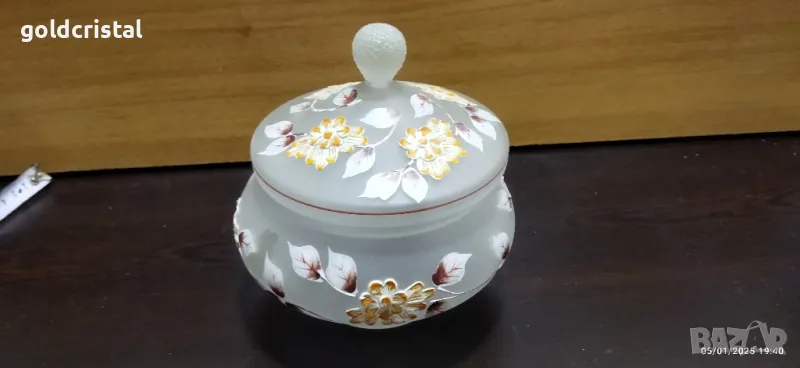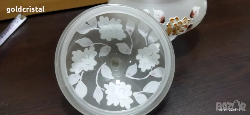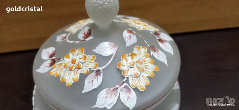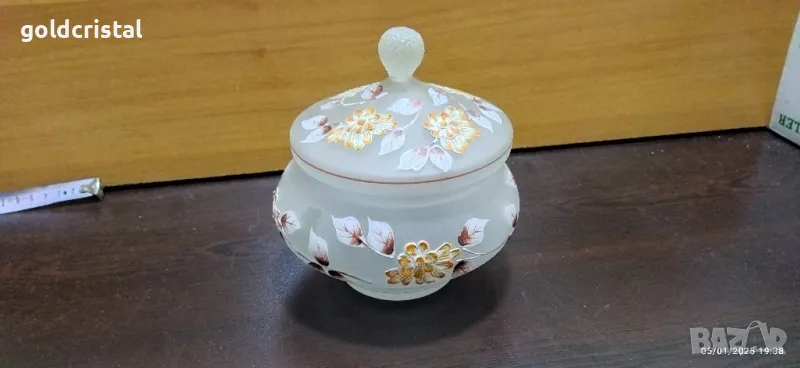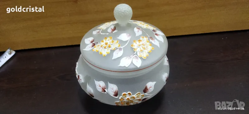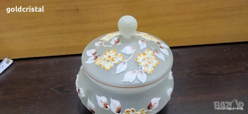 кристална купа захарница ръчно рисувана без забележки сервиз комплект сет лот ретро арт декор винтидж колекция стари старинни антикварни предмети обзавеждане за дома и семейството подходящи за подарък за ценители и колекционери