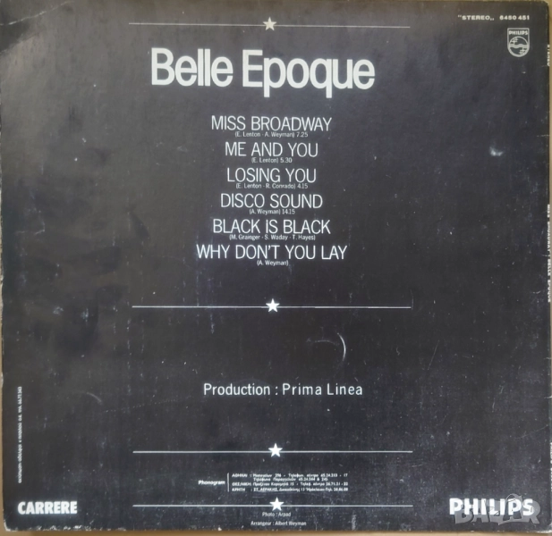 Belle Epoque ‎– Miss Broadway, Greece LP 1977 г. в много добро състояние VG+. Старото хубаво диско.