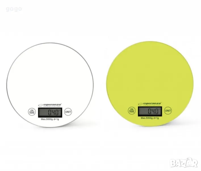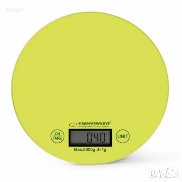 Кухненска везна Esperanza EKS003W,5кгКапацитет: До 5 кг;Прецизност: ±1 г;Размер на дисплея: Голям LCD (53 x 21,6 мм) за ясно отчитане;Мерни единици: g / lb / oz;Захранване: 1 батерия CR2032 (не е включена);Материал на платформата: 4 мм закалено стъкло;Автоматично изключване: Да;Размери: Диаметър 20 см;Цвят: Бяло, манго;Гаранция: 12 месеца.Цена: 30 леваВсяка втора на 27 лева