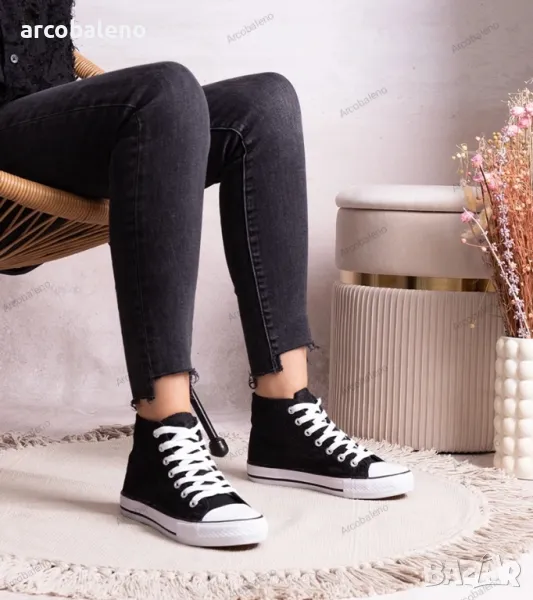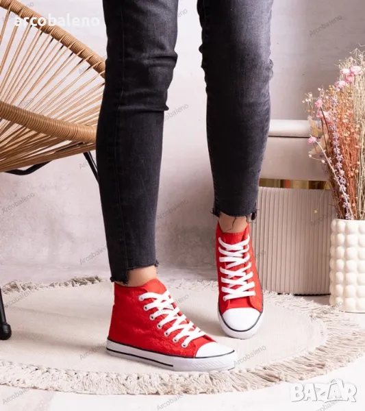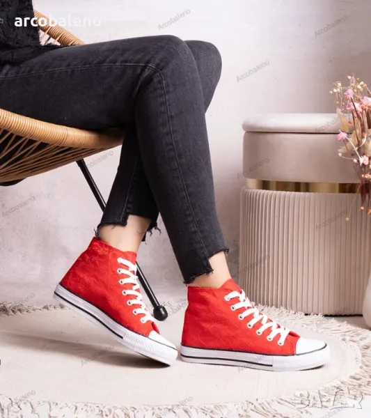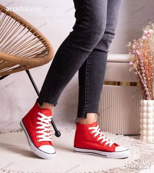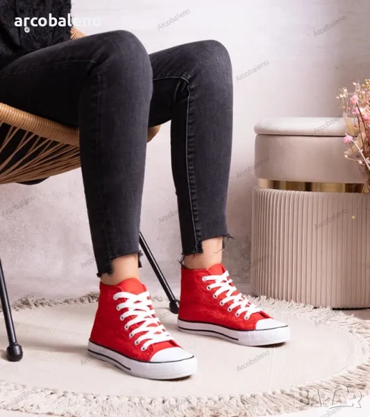 Кройката на тези маратонки е перфектно обмислена, така че изглеждат страхотно на крака и придават оригиналност на стила. Високата им горна част осигурява стабилност и опора на крака, което ги прави идеален избор за ежедневието. Благодарение на тях можете да се чувствате уверени и модерни както на улицата, така и на парти.