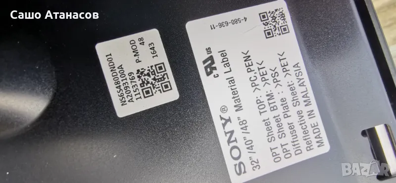 SONY KDL-48WD650 с счупена матрица ,1-980-335-22 ,RE243ZP ,1-458-900-11 ,1-980-483-11 ,LB48009 V0_03