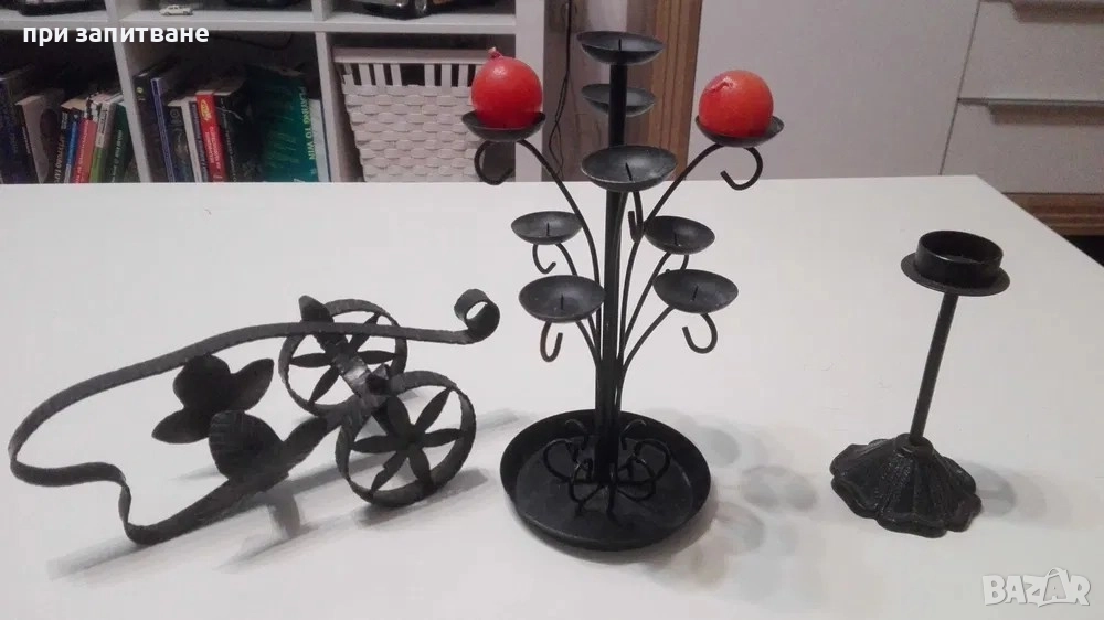 Маслена картина, 54 х 46 см.; Свещници и поставка за вино, от ковано желязо. → Обява 48564042