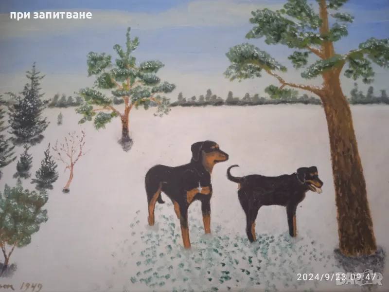Стара авторска картина. Маслени бои в/у шперплат. Размерите са с рамката. Цена 30 лв.