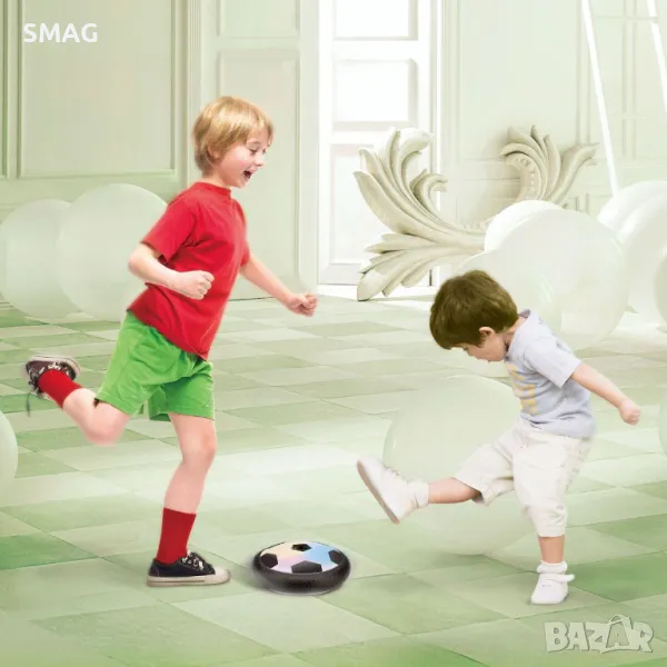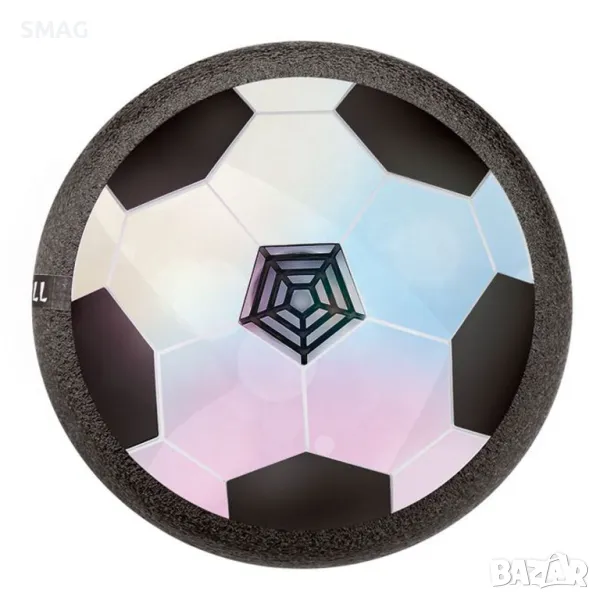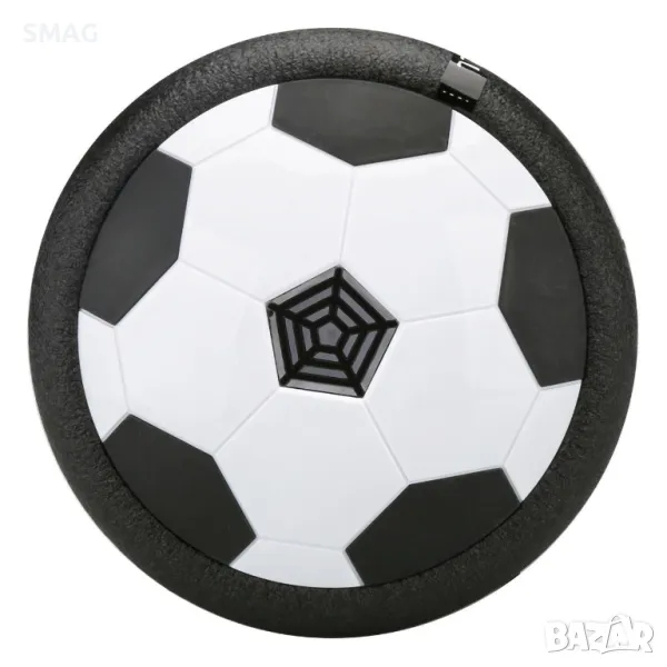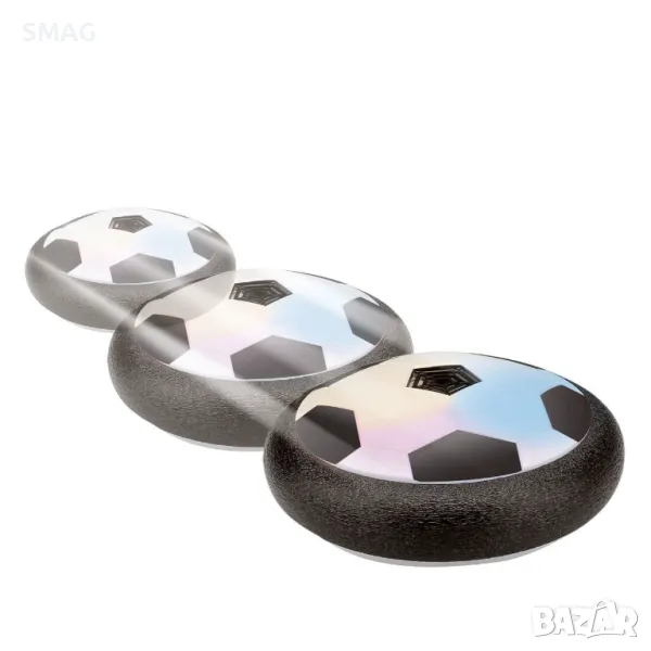 Въздушна футболна топка със светлина. Топката отдолу е с вентилатор и при задействане почти лети и се плъзга по повърхността. Изработена е от мек материал и не изхабява мебелите и стените. Това е забавна игра за всяко закрито пространство и ви помага да занимавате децата у дома, което прави футбола още по-забавен Работи с 4 батерии АА (не са включени).