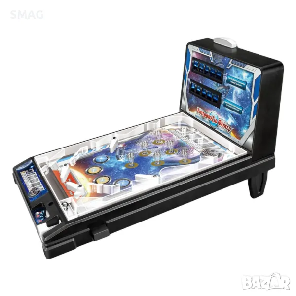 Настолна игра флипер с лесно сглобяване, лост и бутон за стартиране. Има светлини, звуци, ръчно и цифрово оценяване. Работи с 6 AA батерии (не са включени).