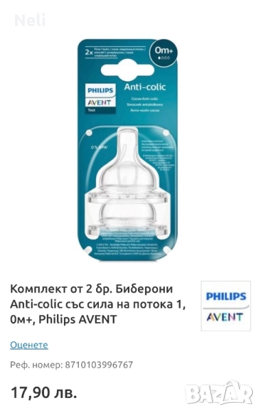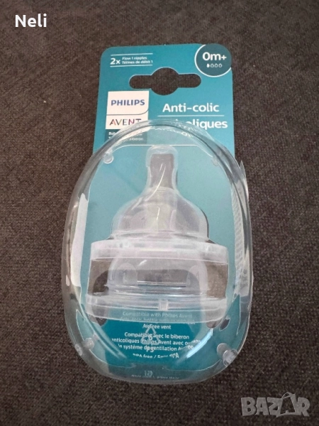 * Комплект от 2бр нови в оригинална опаковка биберони за шишета anti-colic Philips Avent. Предназначени за 0+ бебета,сила на потока 1.
