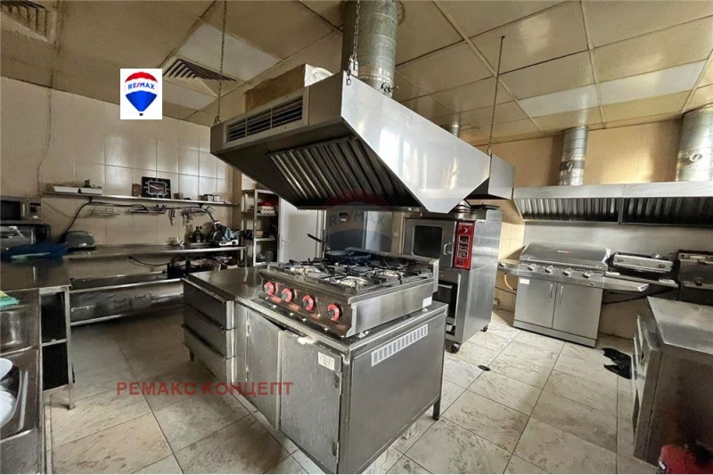 Разполага с търговска зала за 60 човека. Основаната зала е разделена на търговска част, закрита кухня, шоу кухня, санитарни помещения. стая за почивка. Професионалната кухня на ресторанта е напълно оборудвана и разполага с отделни помещения за обработка на риба, яйца и зеленчуци. Също така отделно миялно помещение, оборудвано с професионални съдомиялни, както и две складови помещения, които са оборудвани със