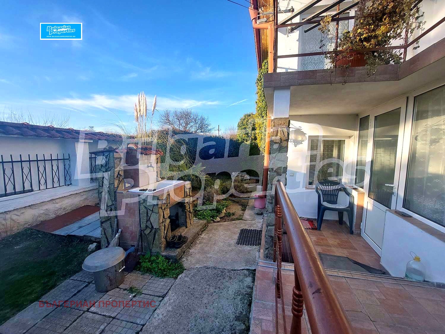 Дворът е изключително поддържан с цветна градина от най-различни видове цветя, кактуси и растения, овощни цветни дръвчета, лозови насаждения, бамбук и други.