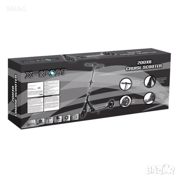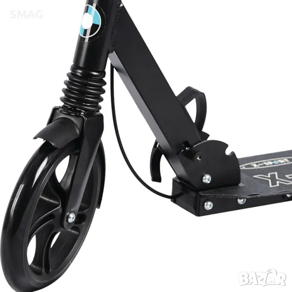 Тротинетка с регулируема височина 85-100 см кормило, с PU колела с диаметър 145 мм с висок отскок и лагери ABEC7. Има ръчна спирачка, задно окачване, предно окачване и спирачка на задните колела.