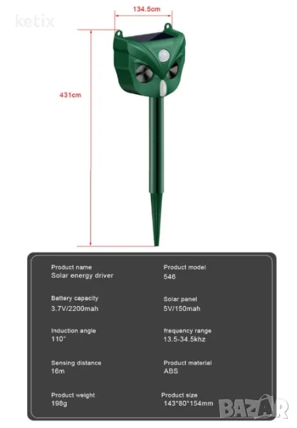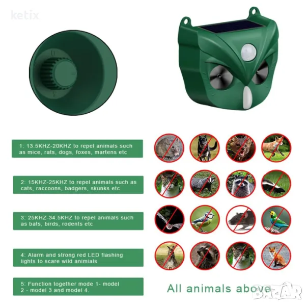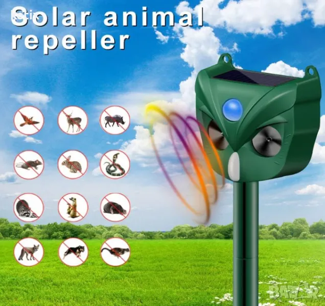 ЕФЕКТИВНА ЗАЩИТА НА ЖИВОТНИТЕ Имате проблеми с нежелани животни близо до вас, градина, ферма и т.н.? Унищожават градината ви или ядат плодовете? Носят ли ви много вируси? Нека започнем с репелента за животни, за да разрешим вашите проблеми! Това ефективно устройство ви помага да се отървете от нежелани посетители на домашни любимци. Включва система със сензор за движение, която открива движение и излъчва мощен ултразвуков звук и мигаща LED светлина.