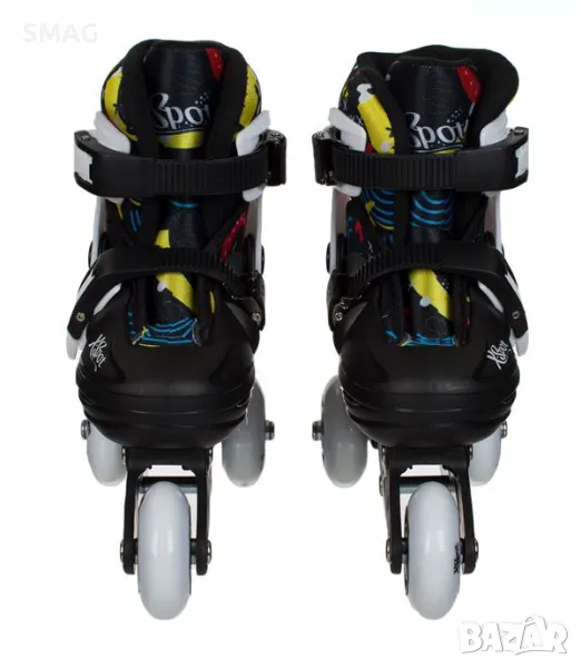 Ролери за момчета и момичета, с регулируем размер. Разполага с 2 етапа с 2 задни колела за лесно обучение и вградени колела за безкрайно забавление. Със стоманени лагери и PVC колела 64х24 мм. Намерете своя размер и натиснете бутона за регулиране Има спирачка на гърба.