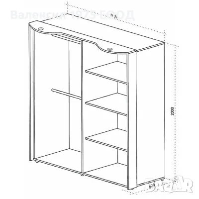 Четирикрилен гардероб с две огледала, два лоста за закачалки и три рафта : 180/ 62/ Н200 см;