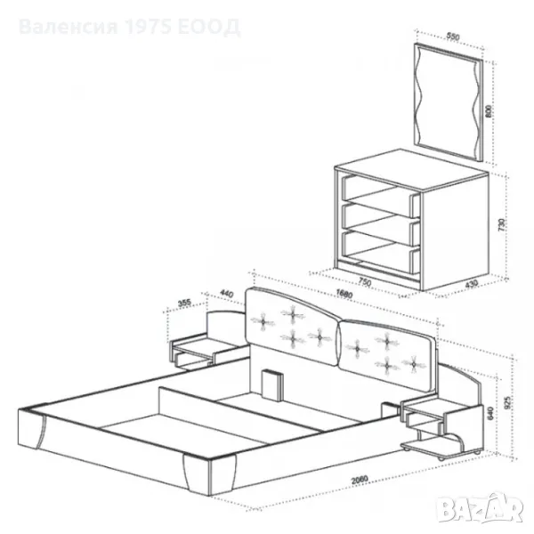 * Допълнително може да се поръча скрин с огледало+ 228 лв;