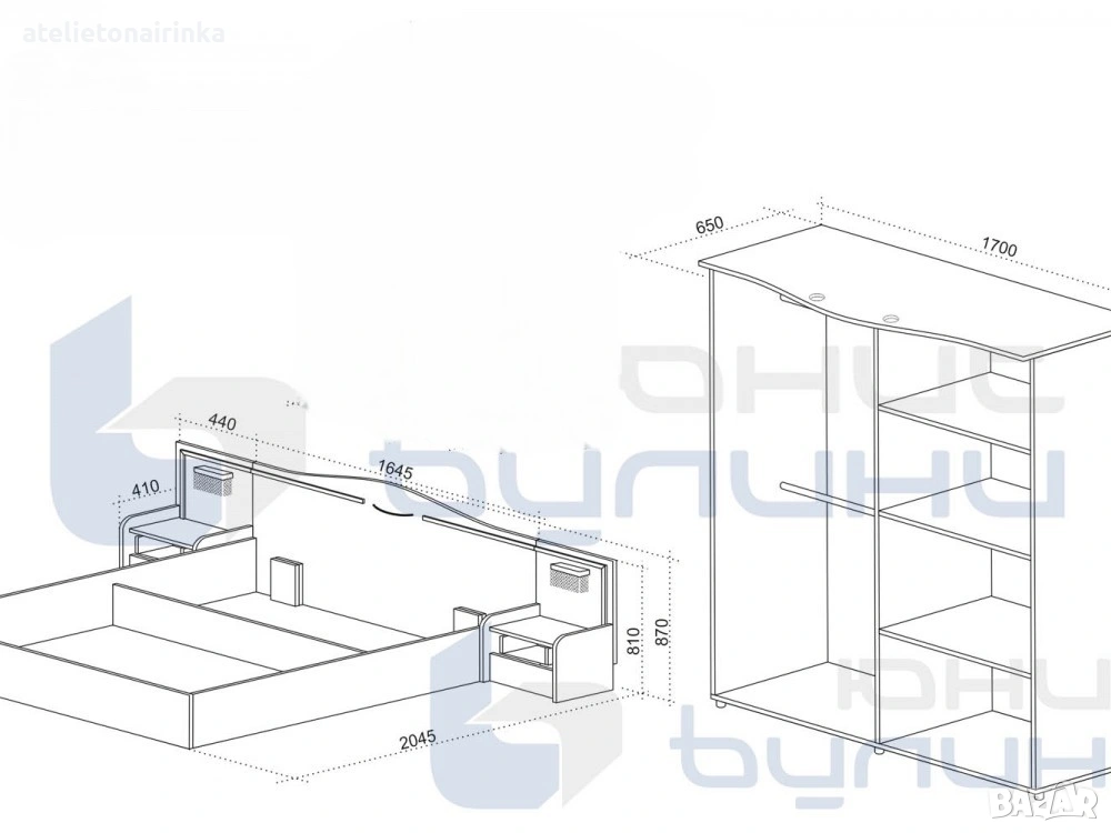 Спалня с нощни шкафчета и LED лампи с кристали: 252,5/ 204,5/ Н87 см;