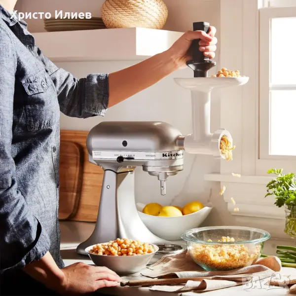 KITCHENAID 5KSMFGA Месомелачка и аксесоари за фреш кухнята Бургери, салси, спрейове, сирена и др. Можете да приготвяте свежи и креативни ястия бързо и лесно с месомелачката KITCHENAID.