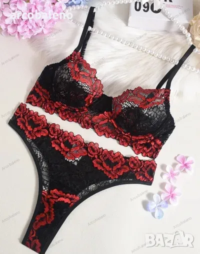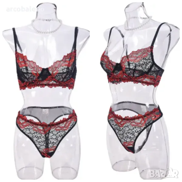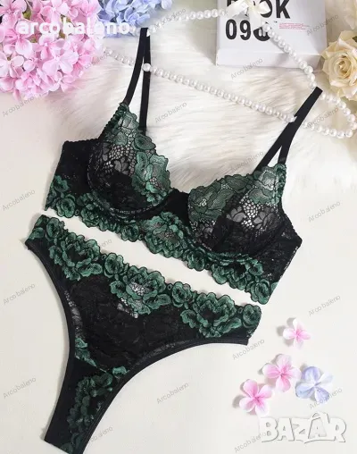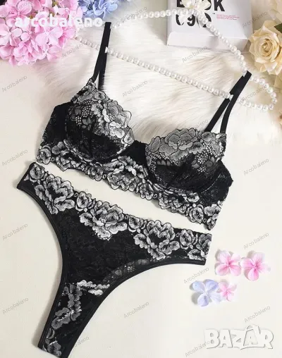 Дамски комплект бельо с дантелен сутиен в контрастен цвят