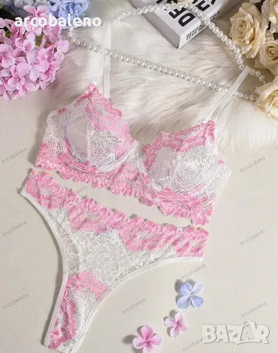 Дамски комплект бельо с дантелен сутиен в контрастен цвят, 4цвята