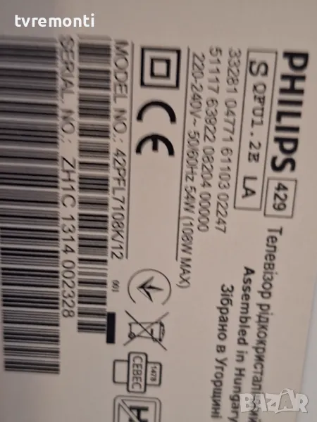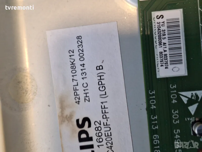 Main board 310432880061 3104 303 54945 3104 313 66185 42 inc DISPLAY LC420EUF PFF1 for PHILIPS 42PFL7108K/12 борда е гарантирано работещ Демонтиран от телевизор PHILIPS модел 42PFL7108K/12 със счупен дисплей LC420EUF PFF1 тествана от нашия техник Ремонт на всички марки съвременни телевизори