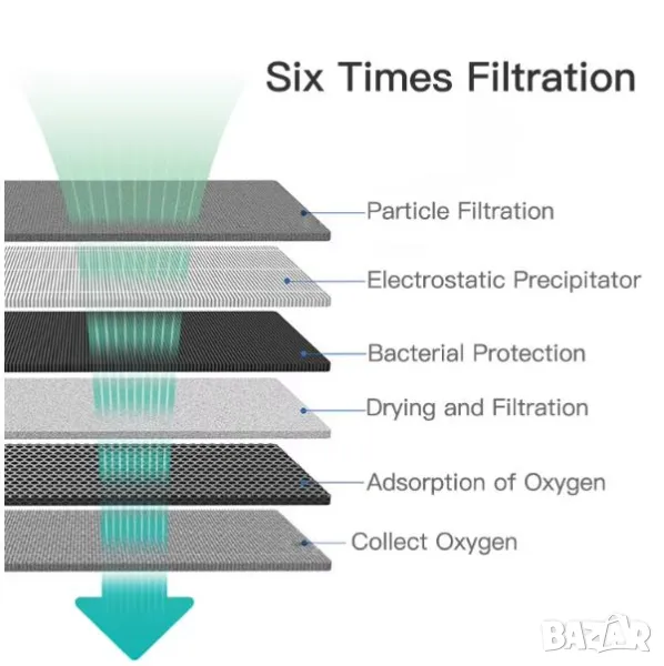 * 6 филтриращи системи за осигуряване на чистота на кислорода.