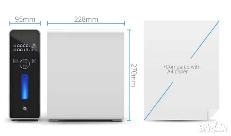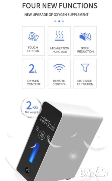 Лесен за носене: Преносимият кислороден апарат е с тегло от само 1.98 кг., като кислородното устройство може да се съхранява в раница, може да се използва и при пътуване в колата, с приложеният адаптер за автомобил.