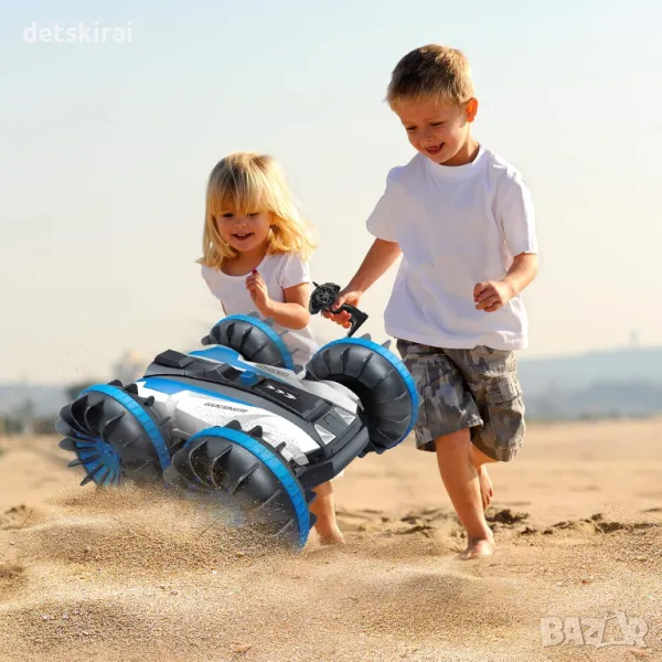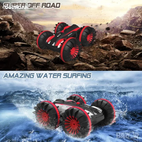 - 2 в 1 Amphibious RC Car & Boat - 4WD амфибийният автомобил с дистанционно управление е не само сухопътен състезател, но може да сърфира и по вода! Покорявайте всички неравни терени и повърхности с лекота, отдадени на това да ви дадат по-вълнуващо изживяване при шофиране на кола.
