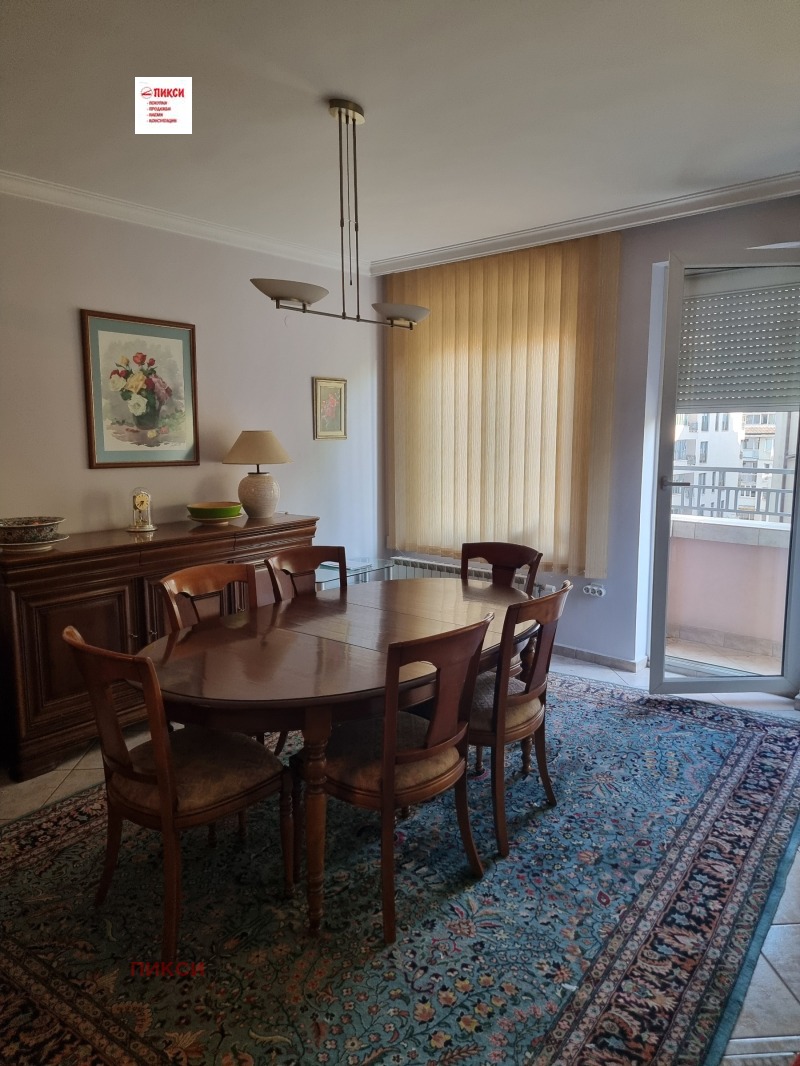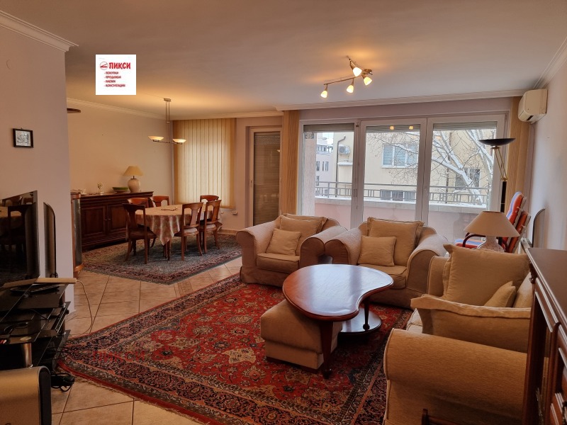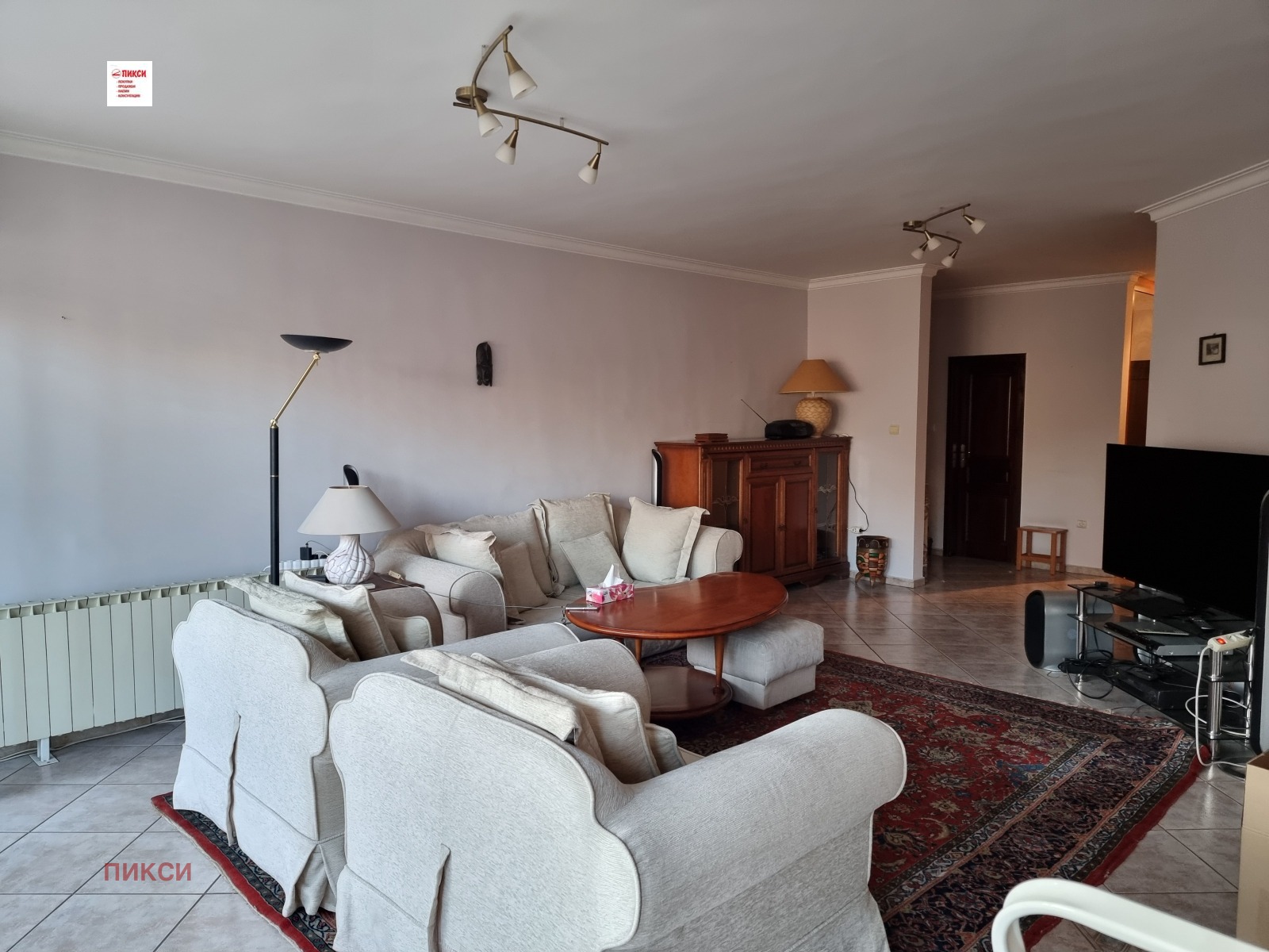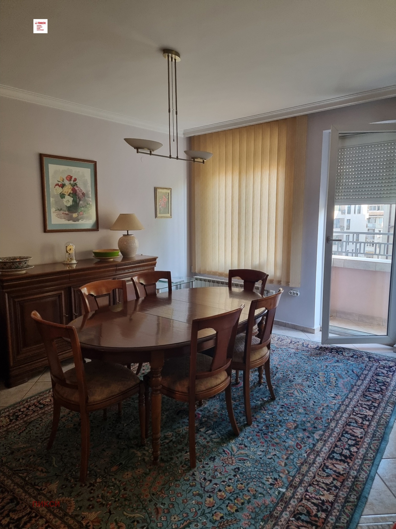 The apartment is near Kozyak Street and Rusaliyski Prohod Street, right next to the South Park. Layout: spacious large living room with dining room and kitchenette and terrace of about 50 sq.m. with southern exposure, two large bedrooms with a shared terrace, bathroom with toilet, second toilet with shower, laundry room. Fully furnished with custom-made furniture and complete equipment of all necessary electrical appliances. Heating and air conditioning. New building with luxurious common areas.
