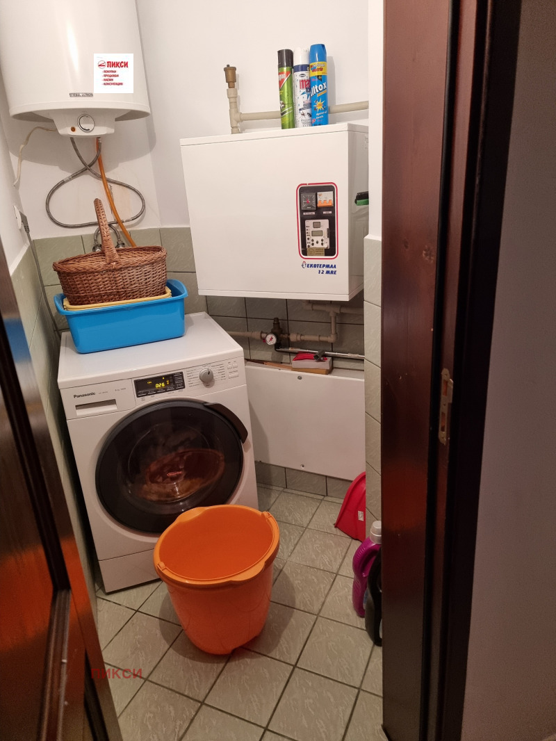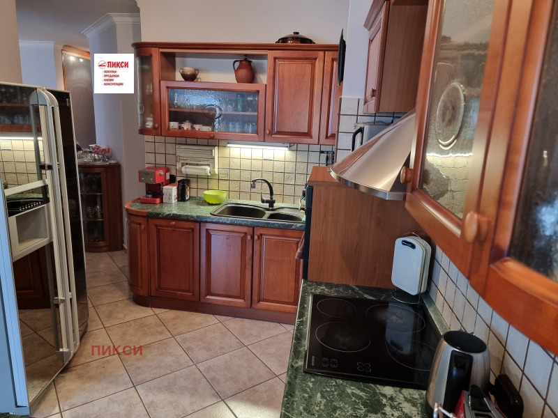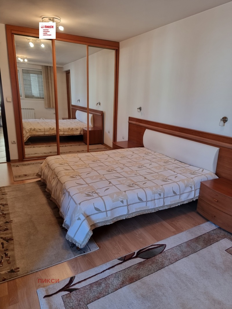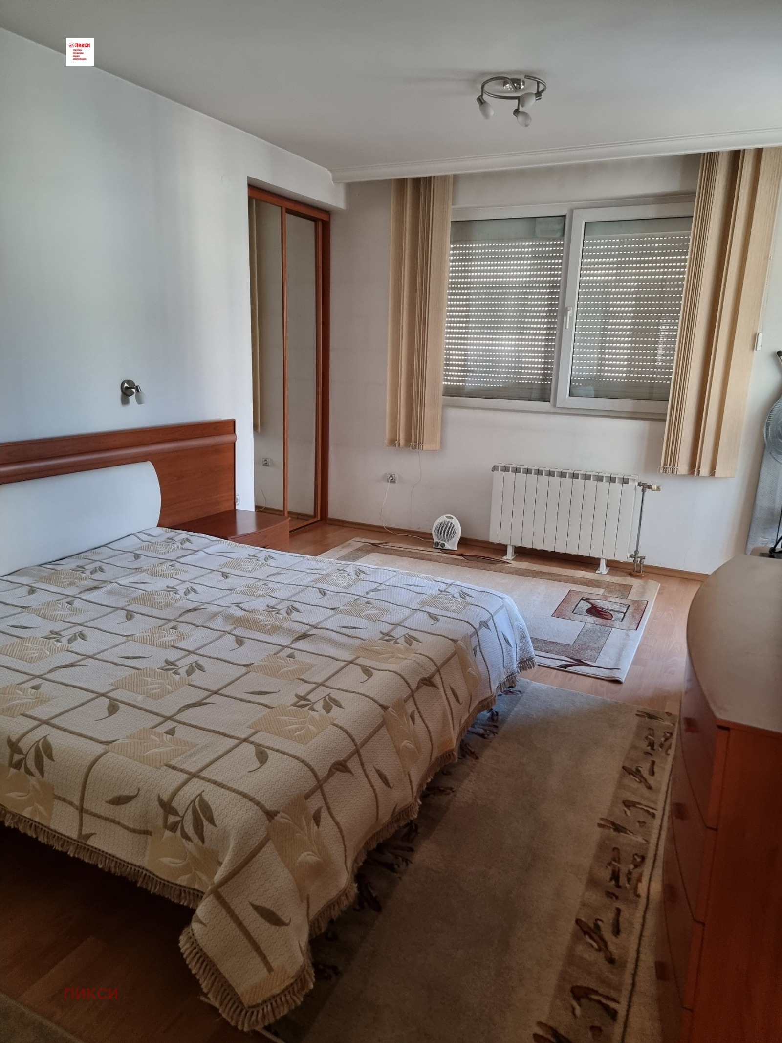 The apartment is near Kozyak Street and Rusaliyski Prohod Street, right next to the South Park. Layout: spacious large living room with dining room and kitchenette and terrace of about 50 sq.m. with southern exposure, two large bedrooms with a shared terrace, bathroom with toilet, second toilet with shower, laundry room. Fully furnished with custom-made furniture and complete equipment of all necessary electrical appliances. Heating and air conditioning. New building with luxurious common areas.