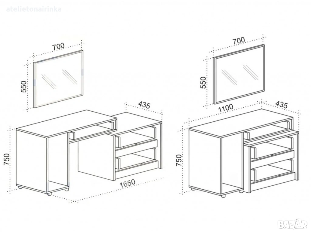 *Допълнително може да се поръча скрин( тоалетка) с огледало+ 159 €( 310,98 лв);