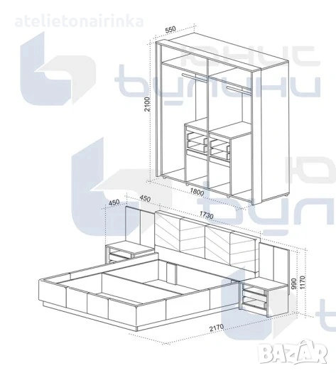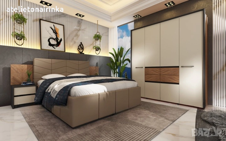 Спалня с нощни шкафчета : 263/ 217/ Н117 см( височина на касата 55 см);